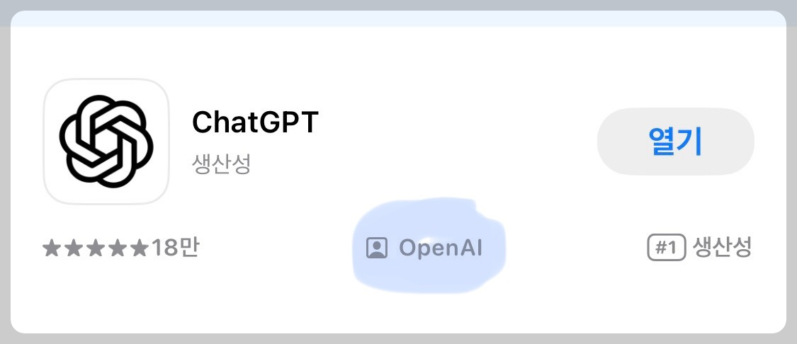 💡 TIP: 가짜 앱이 많으니 꼭 OpenAI 공식 앱인지 확인하세요! - 파란색 마커 부분을 확인하세요~